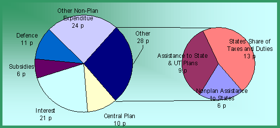During 1996-97, the States and UTs got 28 paise per rupee of expenditure and the remaining 72 paise was spent by the Centre.